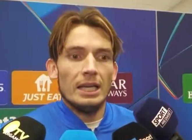 欧冠联赛阶段第6轮,亚特兰大在主场2-1战胜切尔西。赛后,亚特兰大队长德容恩接受了欧足联的官方采访。